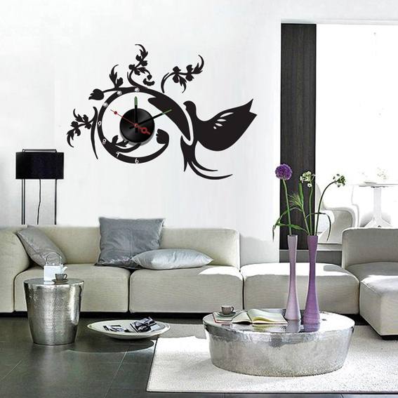 Removable Diamond Bird Designer Wall Sticker Clocks 10D040 Images |